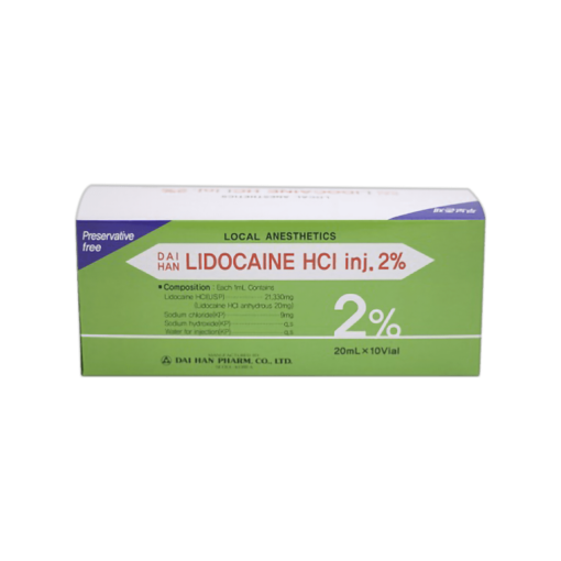 - Each package of Lidocaine HCI Inj 2% includes ten 20ml vials, each containing a 2% concentration of Lidocaine hydrochloride. This packaging configuration is ideal for clinical use, providing ample supply for multiple applications within a single medical facility.